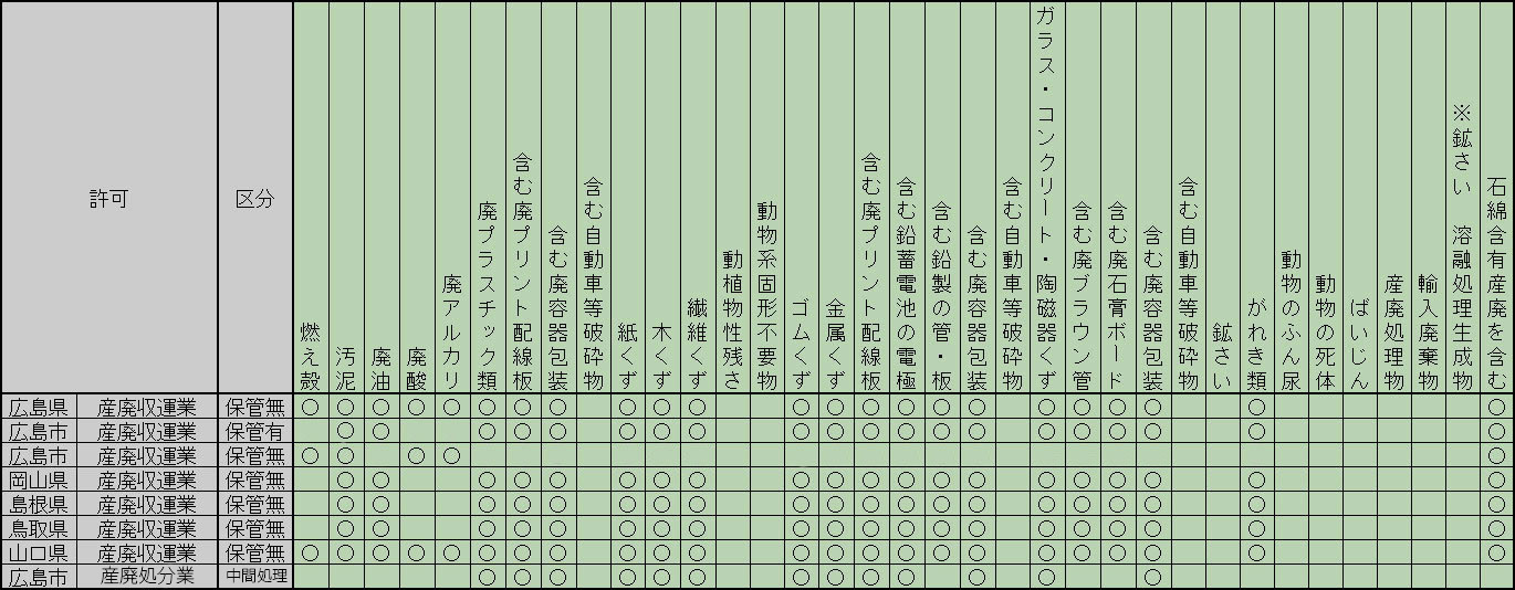 収集運搬/中間処理 許可一覧